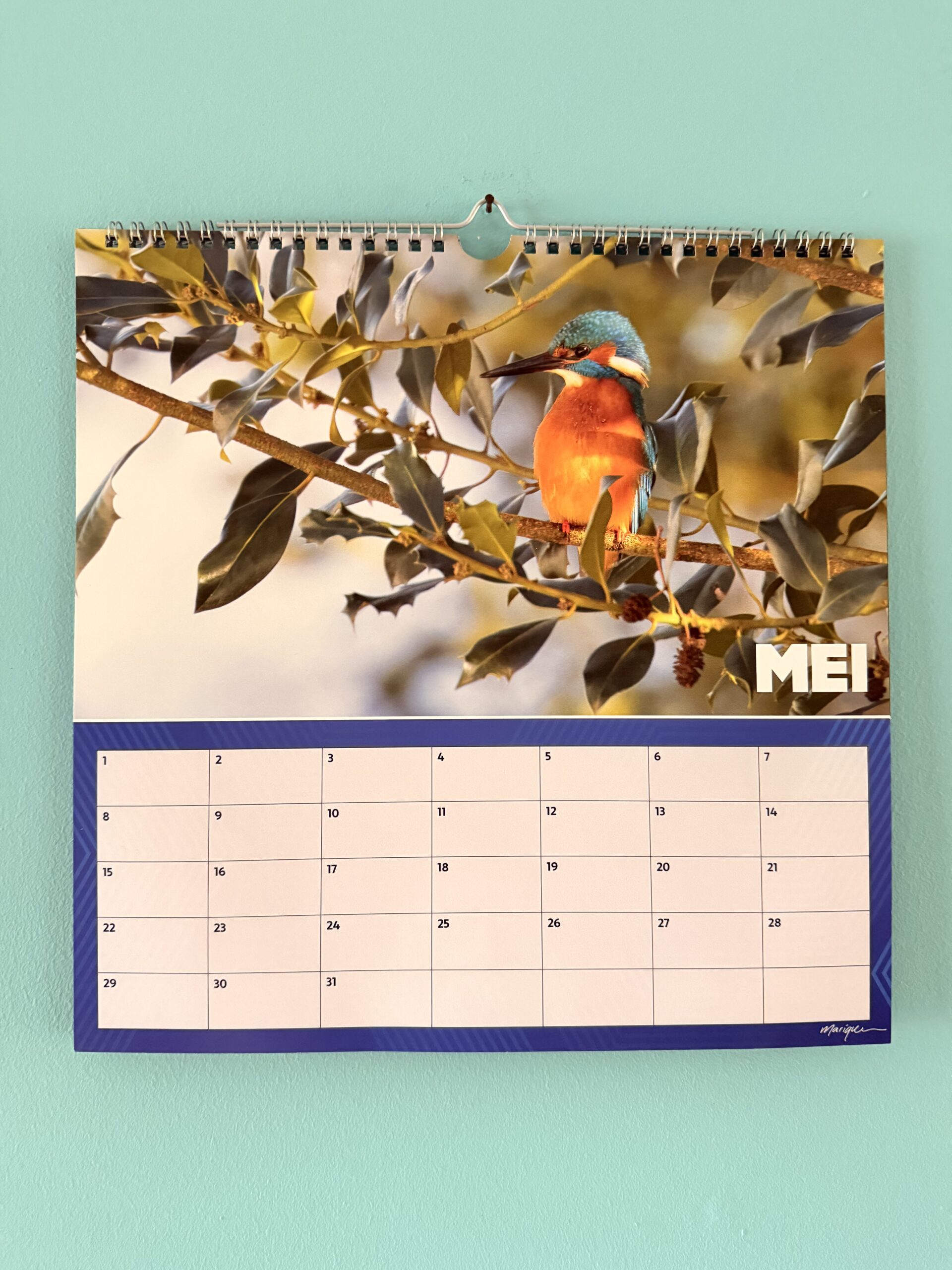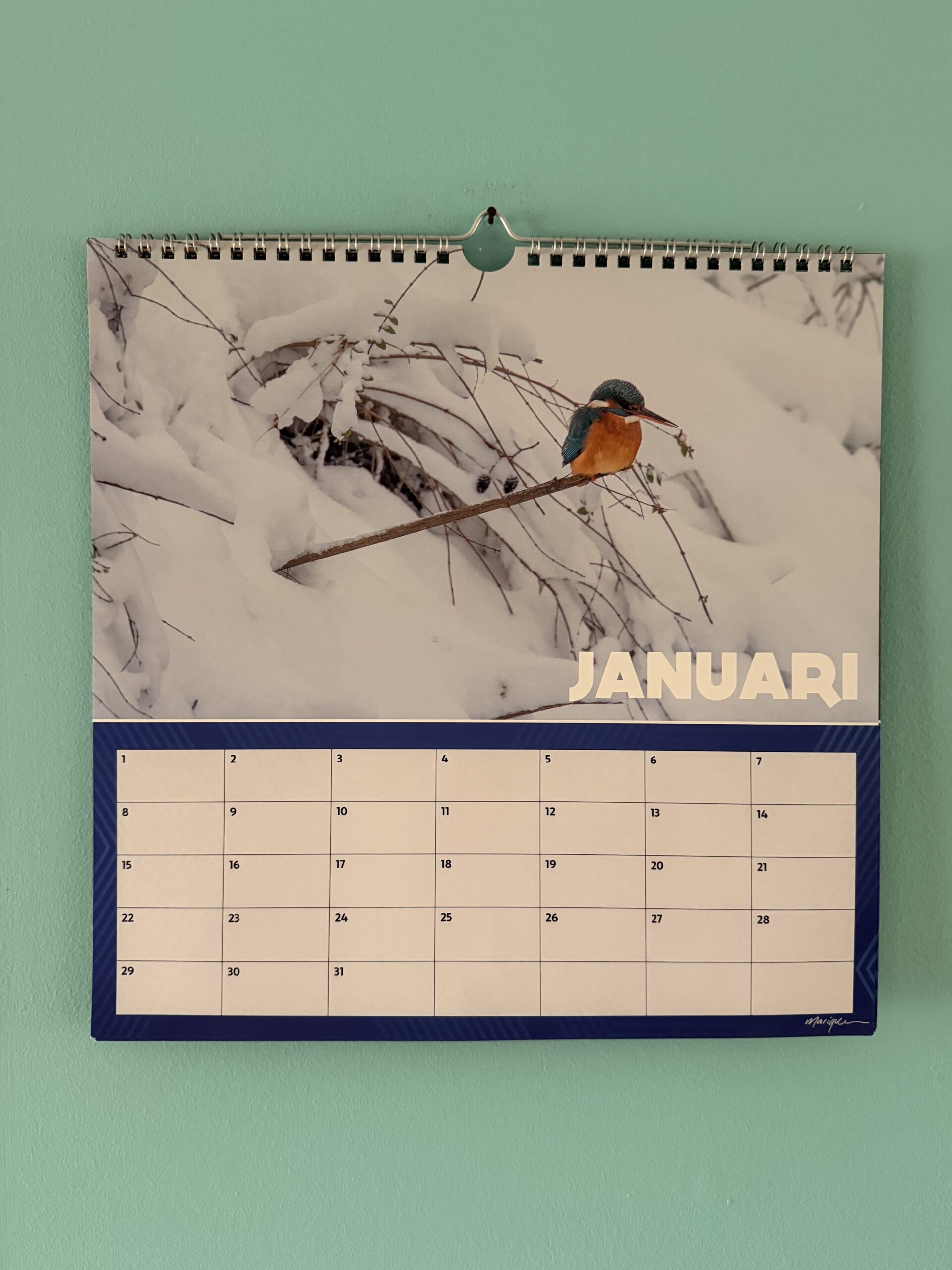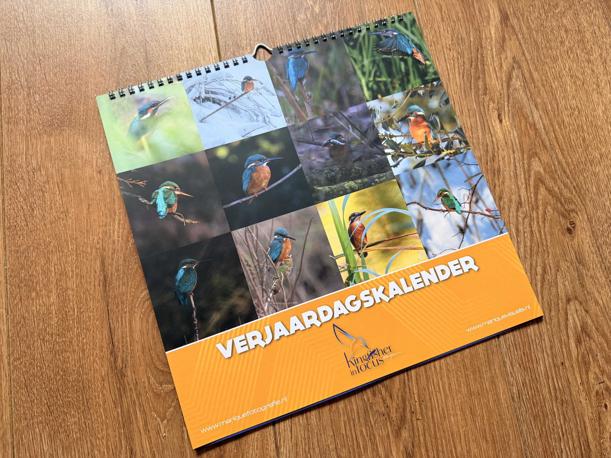 Verjaardagskalender met foto’s van ijsvogels in Nederland.