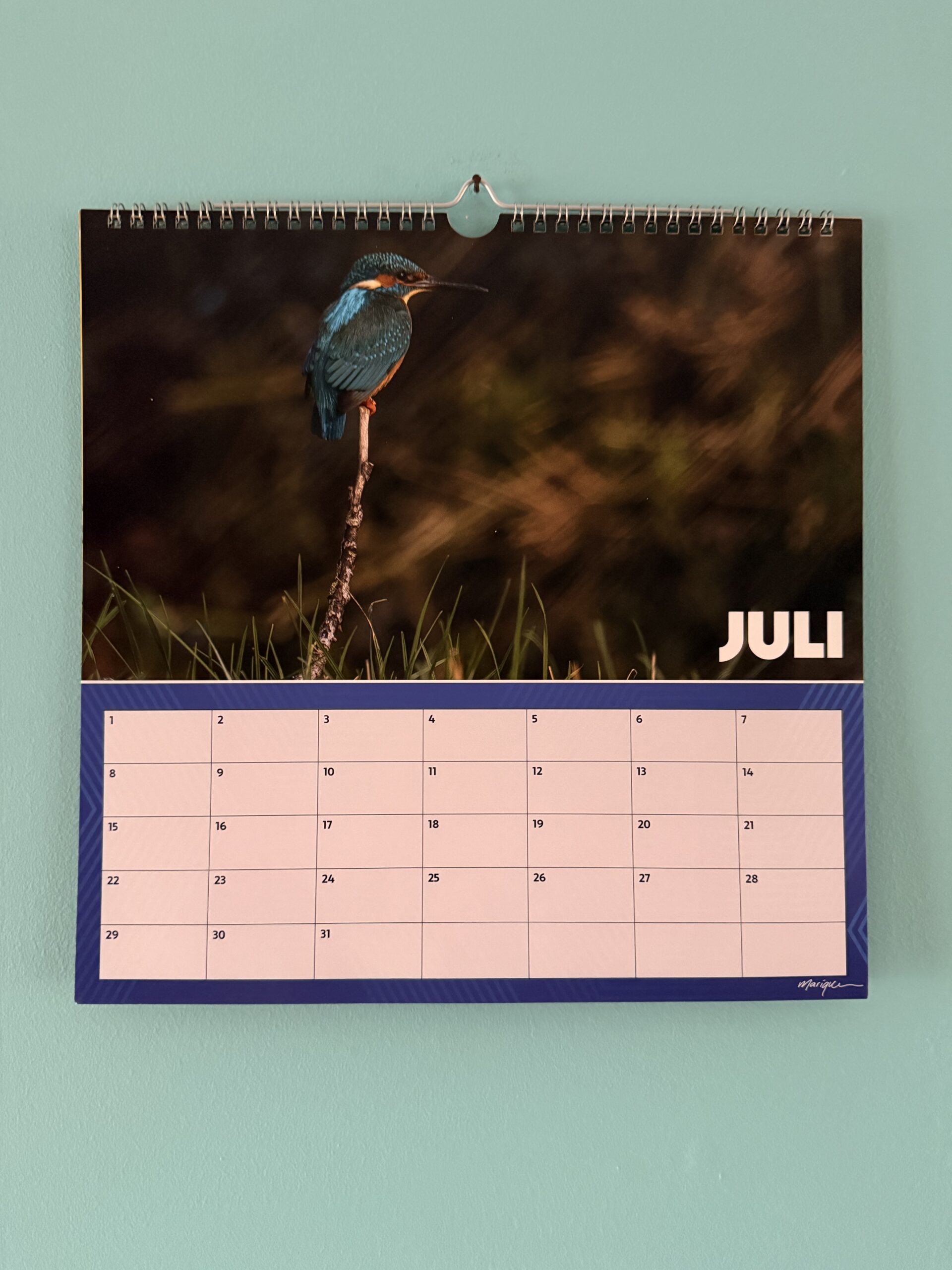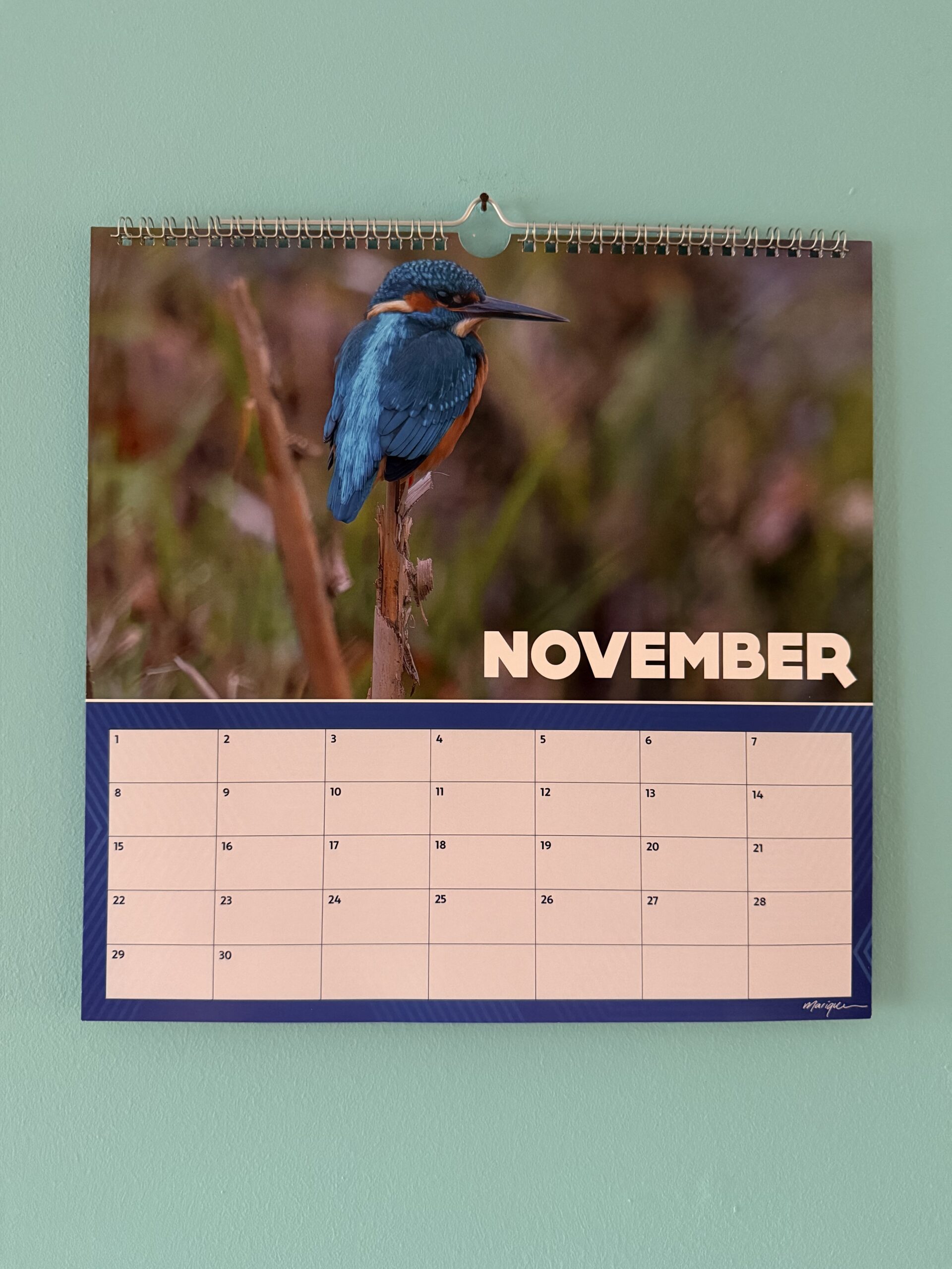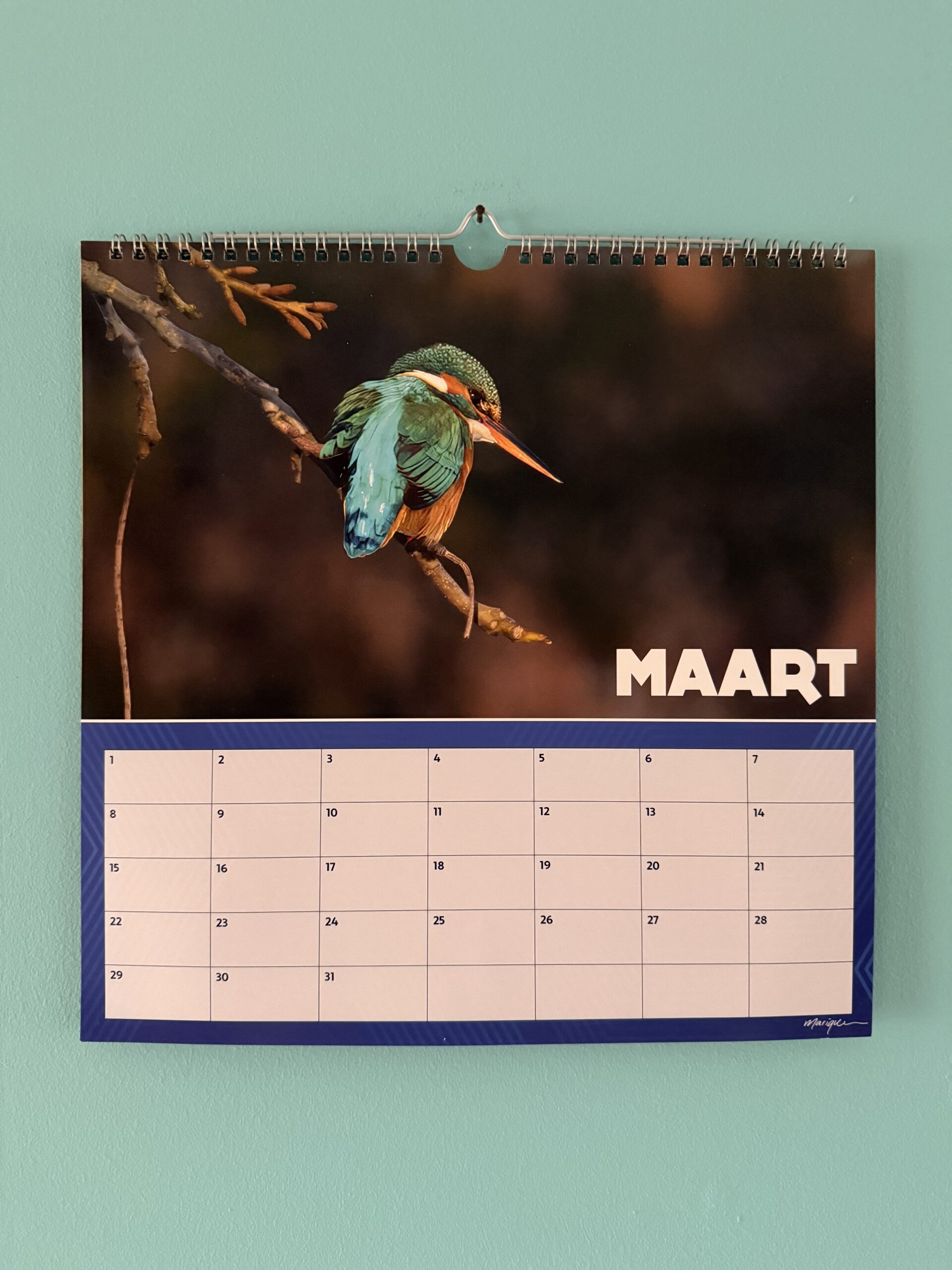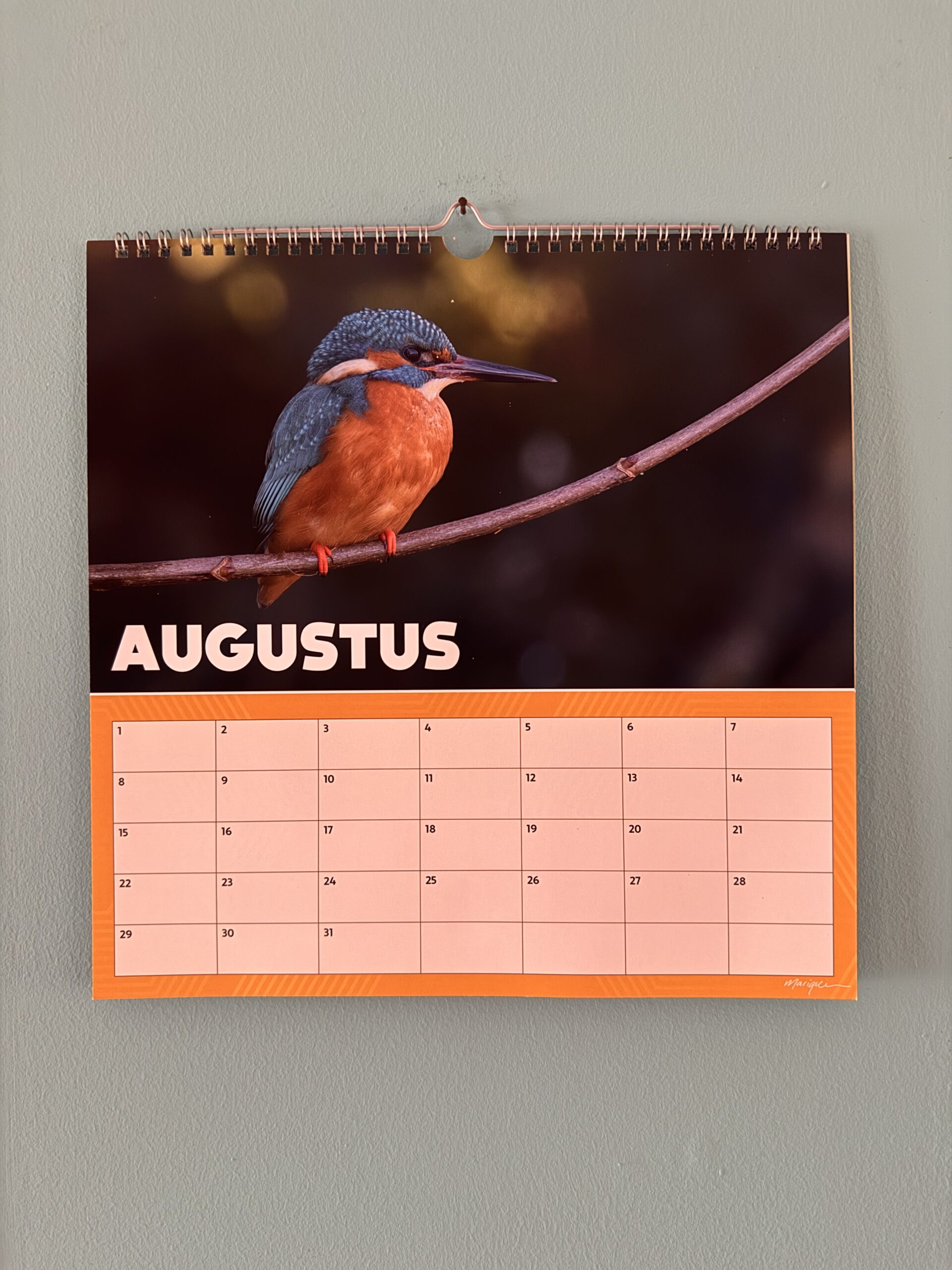 Verjaardagskalender met foto’s van ijsvogels in Nederland.