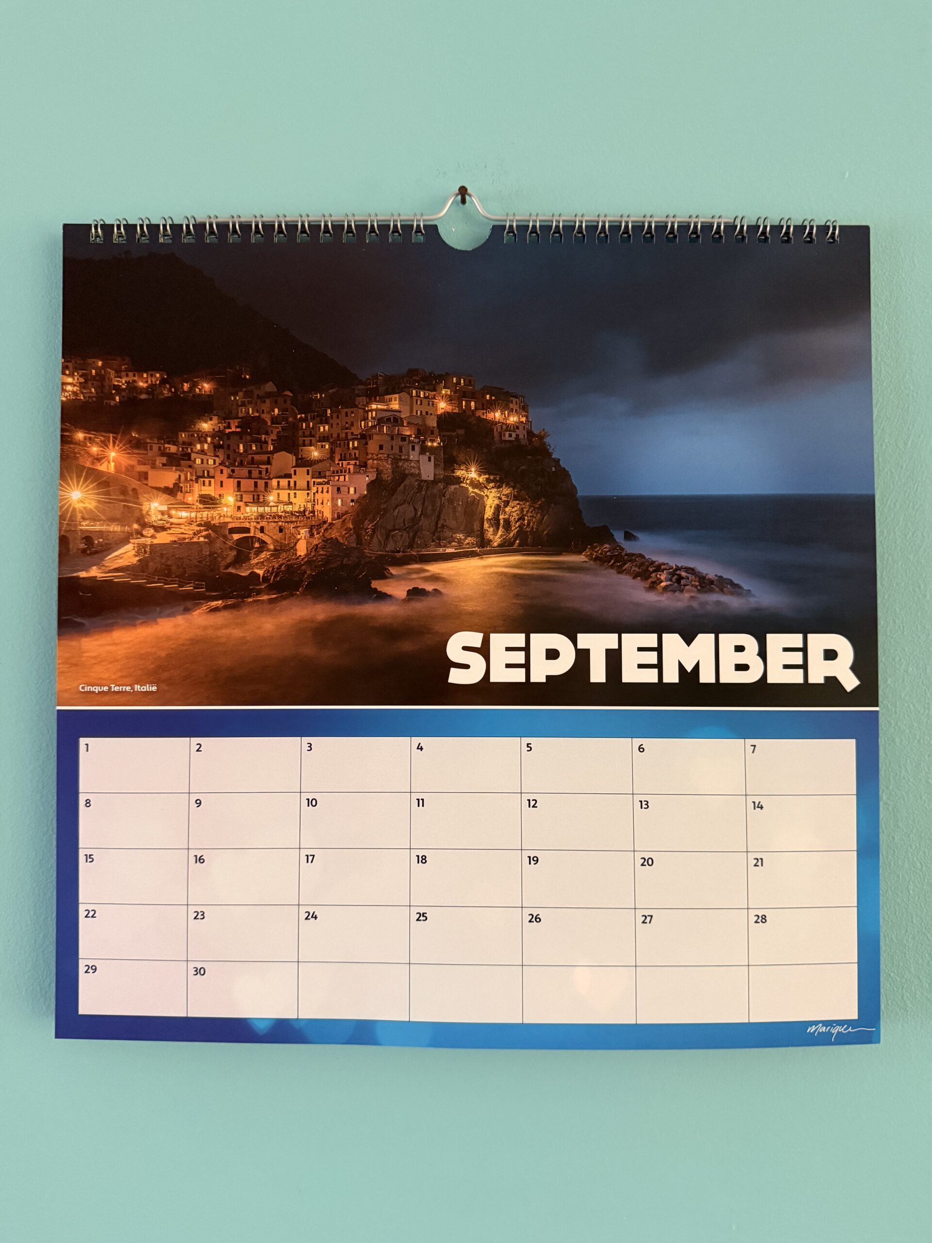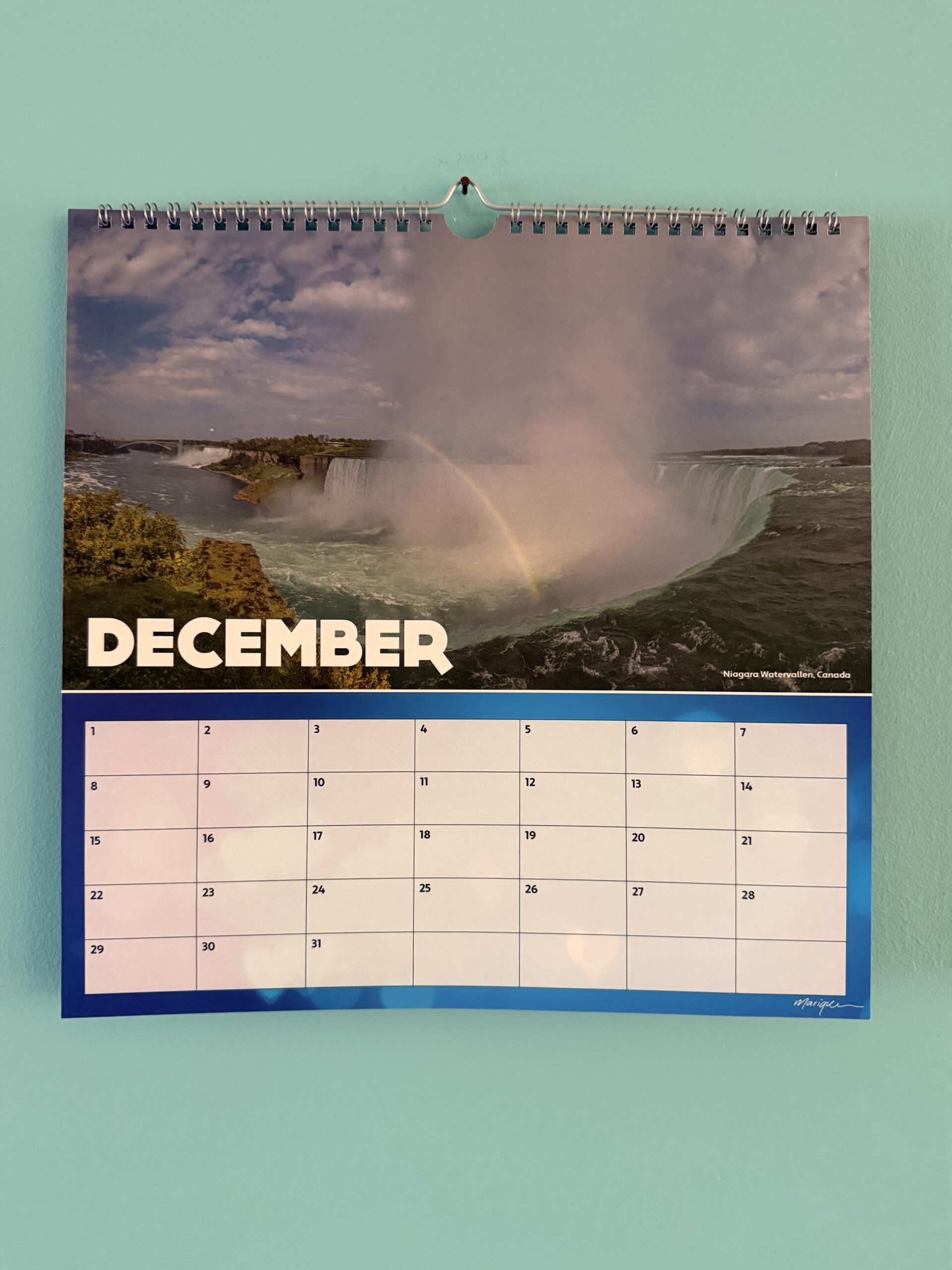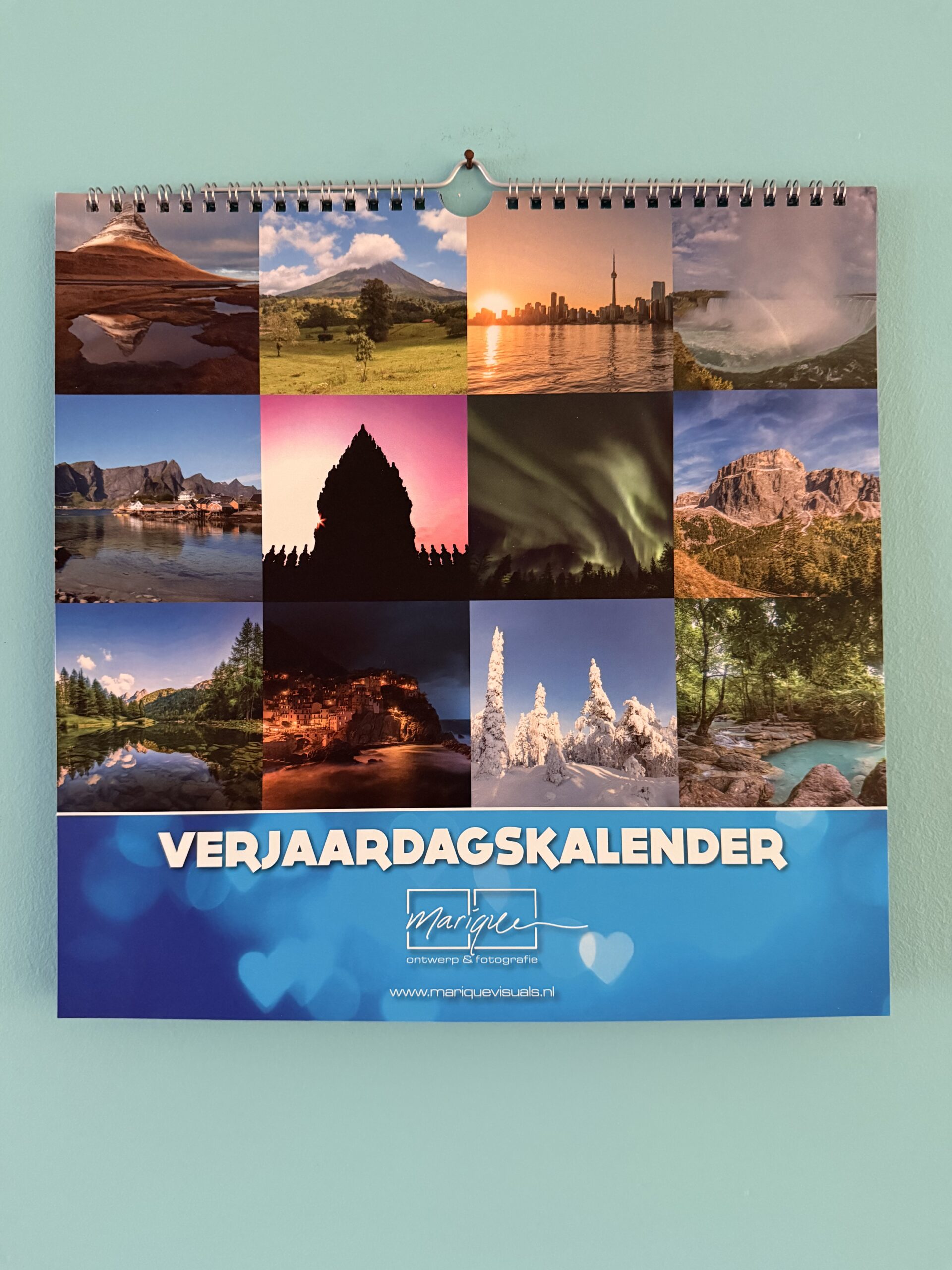 Verjaardagskalender met diverse foto’s van landschappen uit verschillende landen